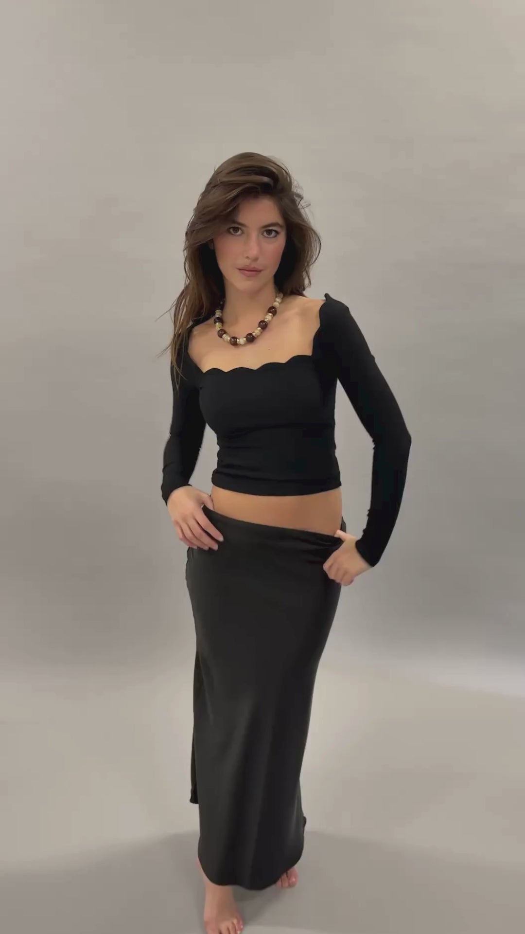 Jeanne is 1.68m tall, has a 85C bra size and wears a size 36.